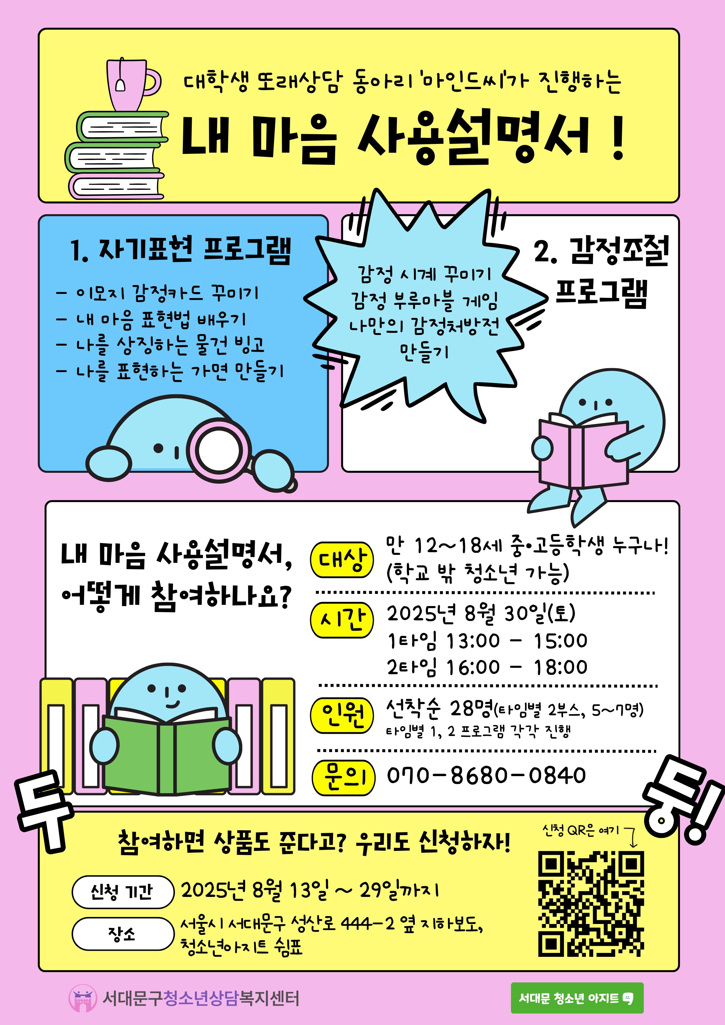 8월 30일 토요일, 나를 표현하고, 내 감정을 조절하는 '내 마음 사용설명서' 프로그램이 진행됩니다!
