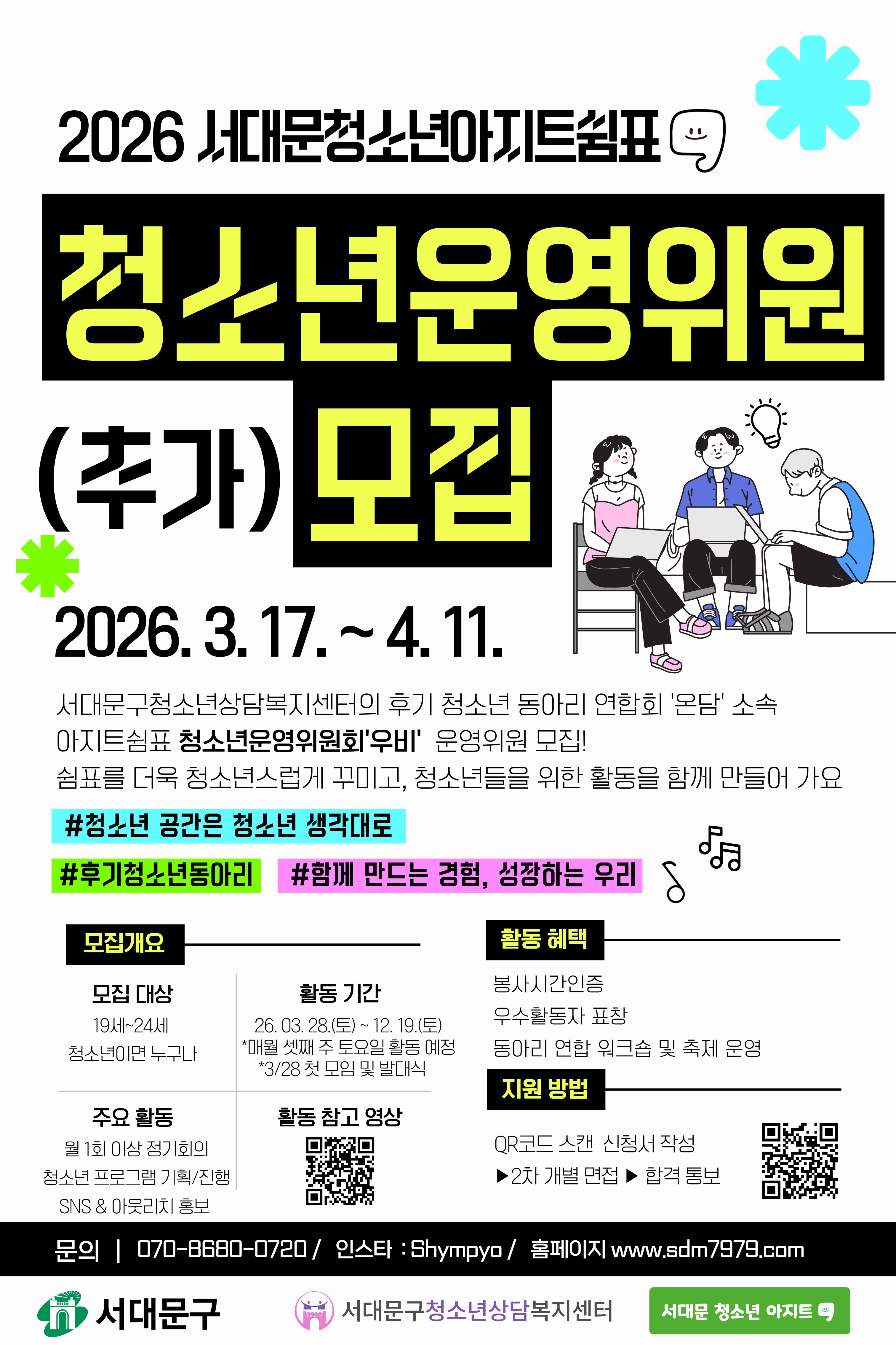2026년 서대문청소년아지트쉼표 청소년운영위원회'우비' (추가)모집