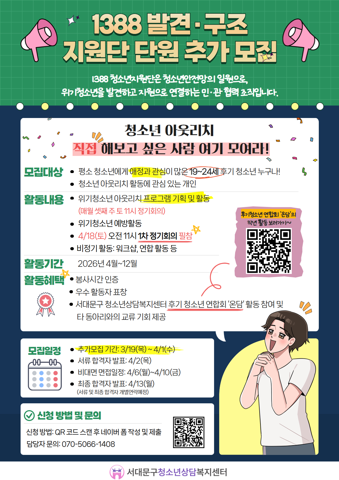 2026년 서대문청소년아지트쉼표 청소년운영위원회'우비' (추가)모집