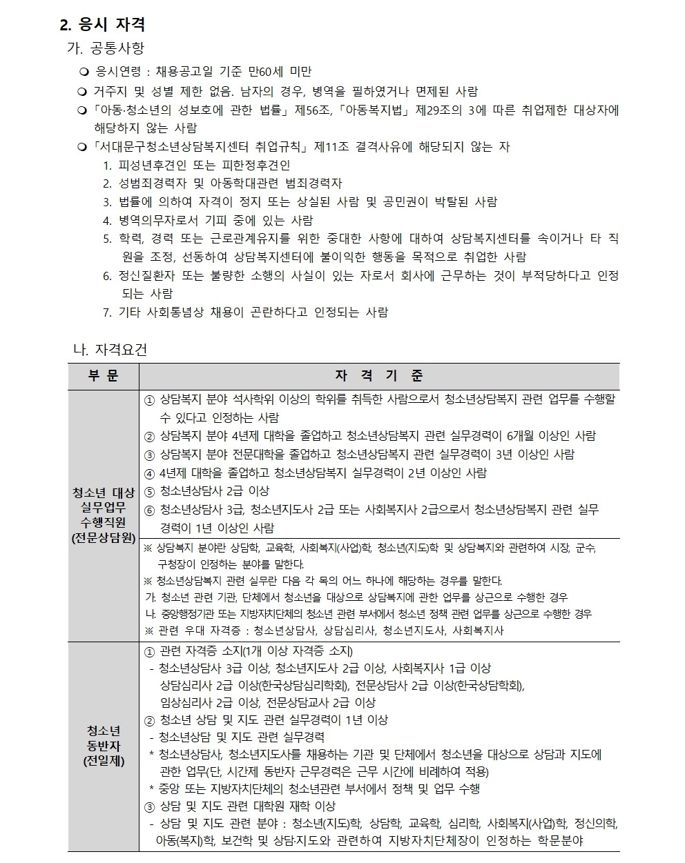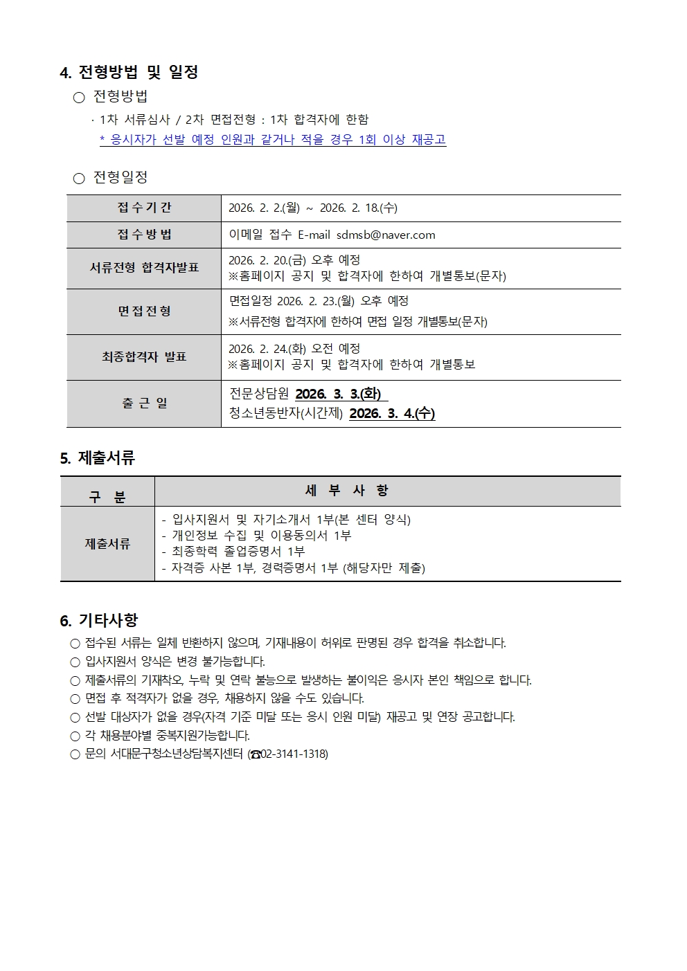 2026년 서대문구청소년상담복지센터 직원 (전문상담원, 청소년동반자 시간제) 공개채용 최...