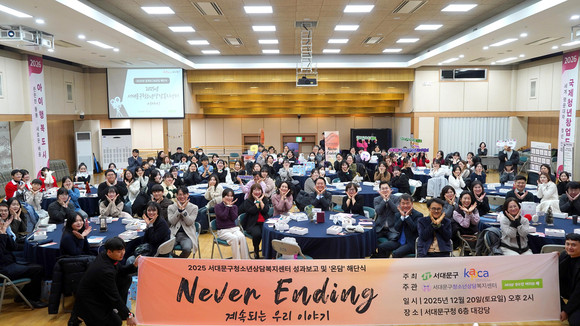 서울 서대문구(구청장 이성헌)가 위탁 운영하는 서대문구청소년상담복지센터가 최근 구청 6층 대강당에서 2025년 성과 보고 및 후기청소년(19∼24세) 동아리 연합회 ‘온담’ 해단식을 개최했다.